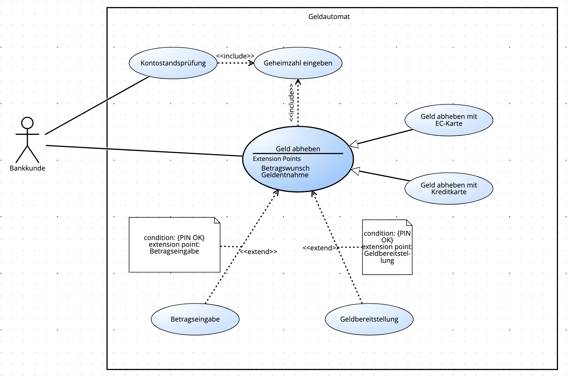 Bei include- und extends-Beziehung wird der Akteur nur mit dem Haupt-Use-Case verbunden